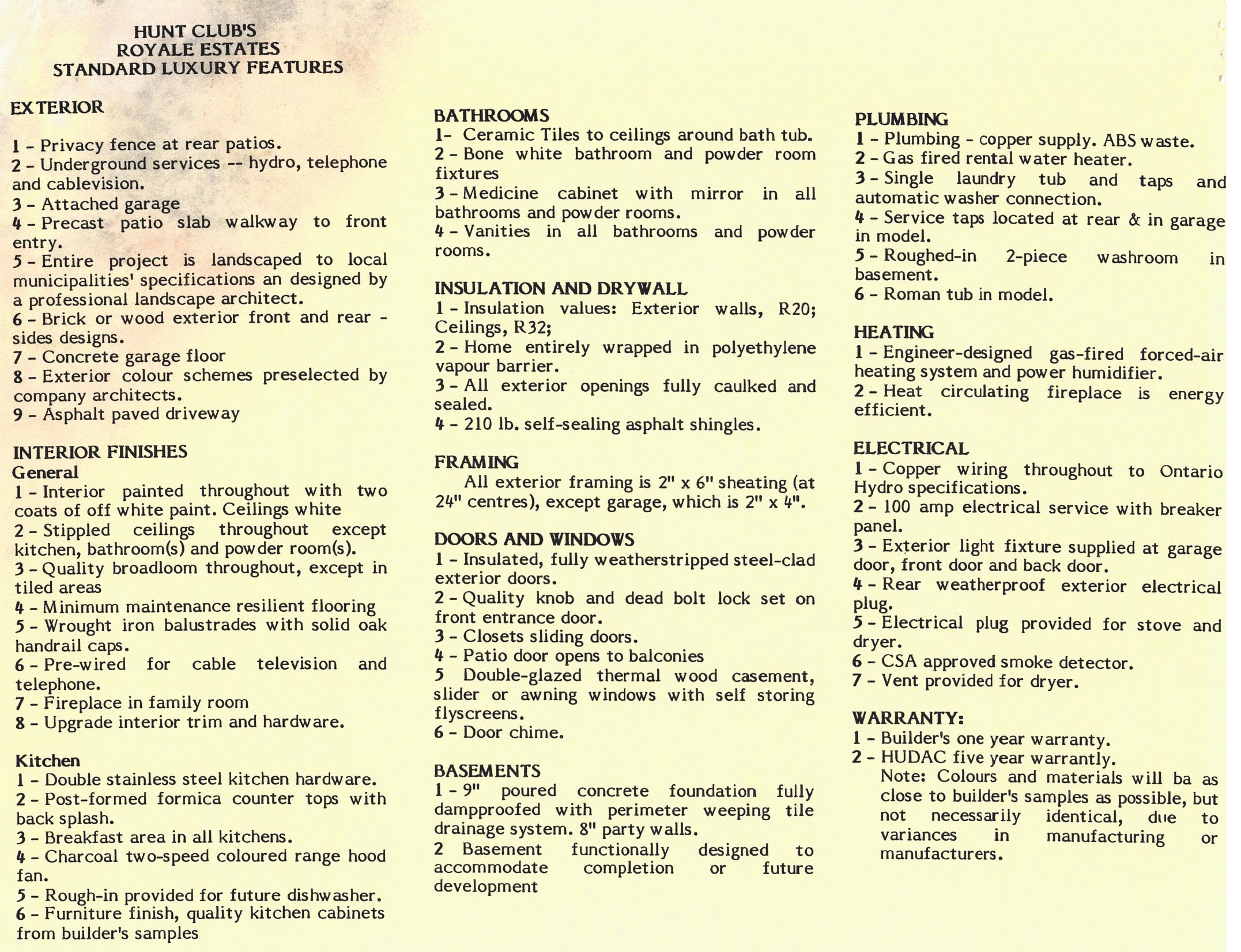 The Huntview Estates enclave has a complicated history that I will not go into detail about here. Below are the details and plans from when Timberlay took over the project. There are two storey and split level designs with attached garages in 3 and 4 bedroom options.